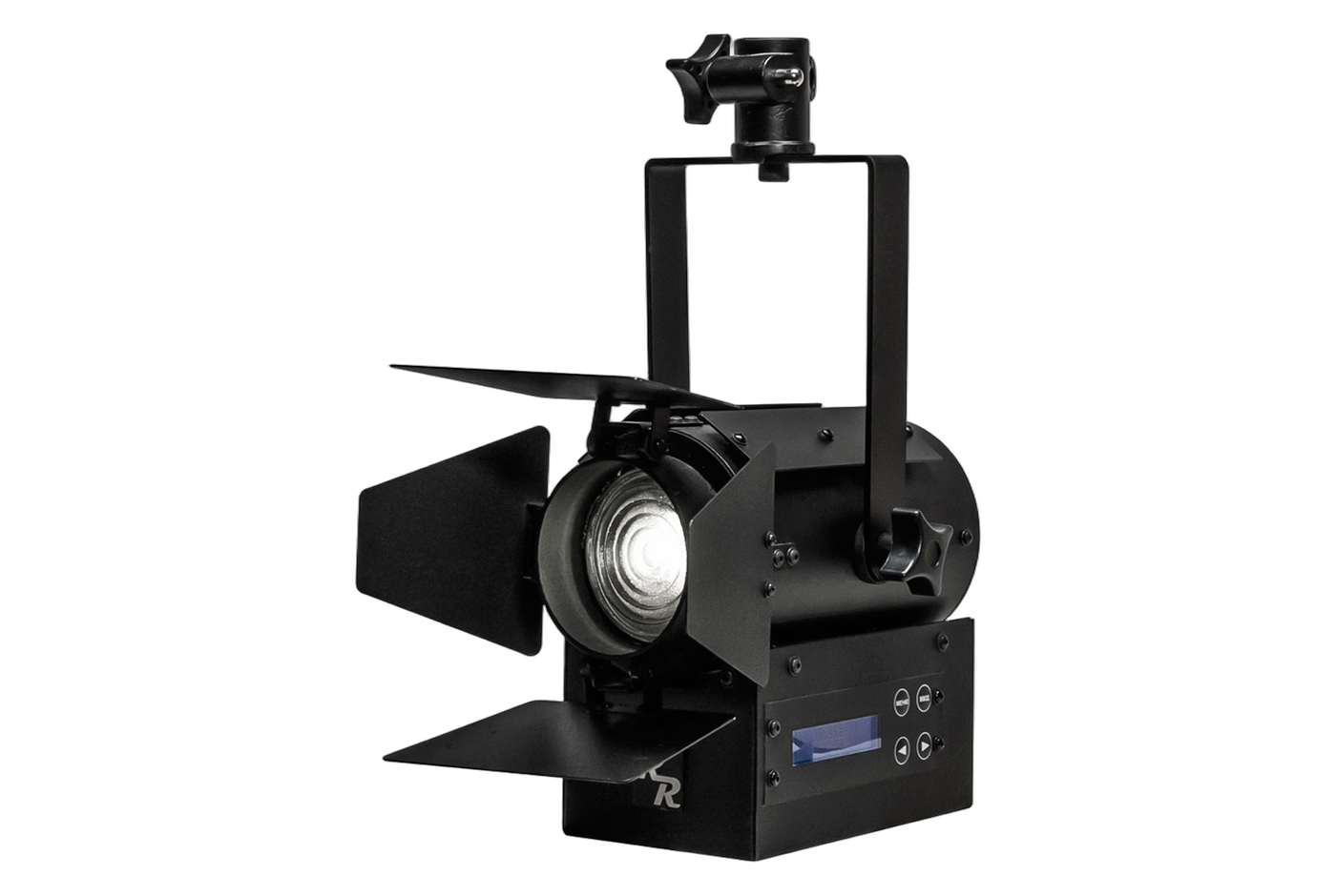 Светодиодный прожектор с линзой френеля RusRay НК 50 предназначен для профессионального использования в малых и средних студиях. Прибор излучает направленный световой поток с цветовой температурой 3200К или 5600К. Особенностью данного светильника является электронная фокусировка посредством сервопривода. Интенсивность светового потока и угол раствора луча в диапазоне от 10 до 45 градусов регулируется вручную через русскоязычное меню на ЖК дисплее, либо со светового пульта по цифровому протоколу DMX.Так же пользователю доступно время общей наработки прибора. Блок управления светильника РусРей НК 50 оснащен функцией мягкого старта для предотвращения негативного влияния переходных процессов на электронную начинку.